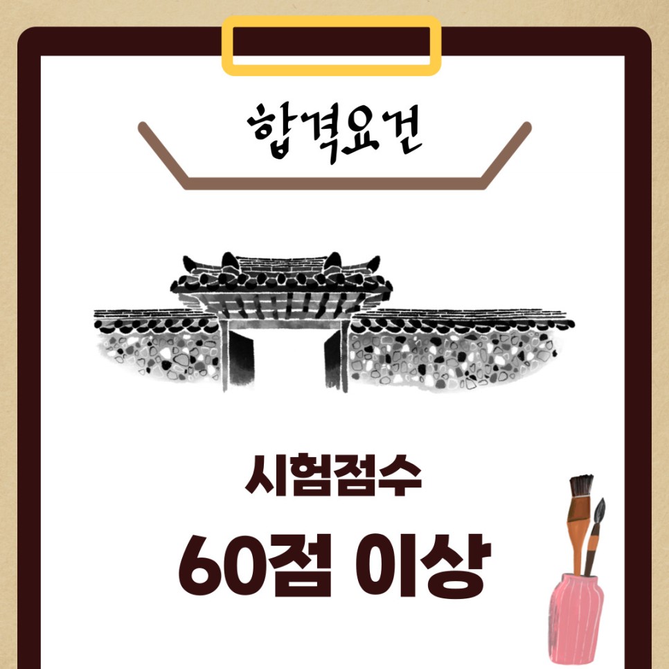 캘리그라피 자격증 필기시험 합격 점수는 60점 이상이다. 즉 60점에 달하는 이론만 완벽하게 숙지해도 된다는 뜻으로 물론 시험의 특성상 전 범위에서 골고루 문제가 출제되므로 가급적 25강까지 1쿨은 돌리는 것이 좋고 그것이 기본이기도 하지만 인생은 항상 완벽하게 흐르는 경우가 드물고 때에 따라 어떻게 흘러갈지 모르기 때문에 출석을 100% 충족하기 어려운 환경이라면 최저 출석 요건의 60%, 최저 합격 요건인 60점 이상 취득에 초점을 맞춰 공부하자!