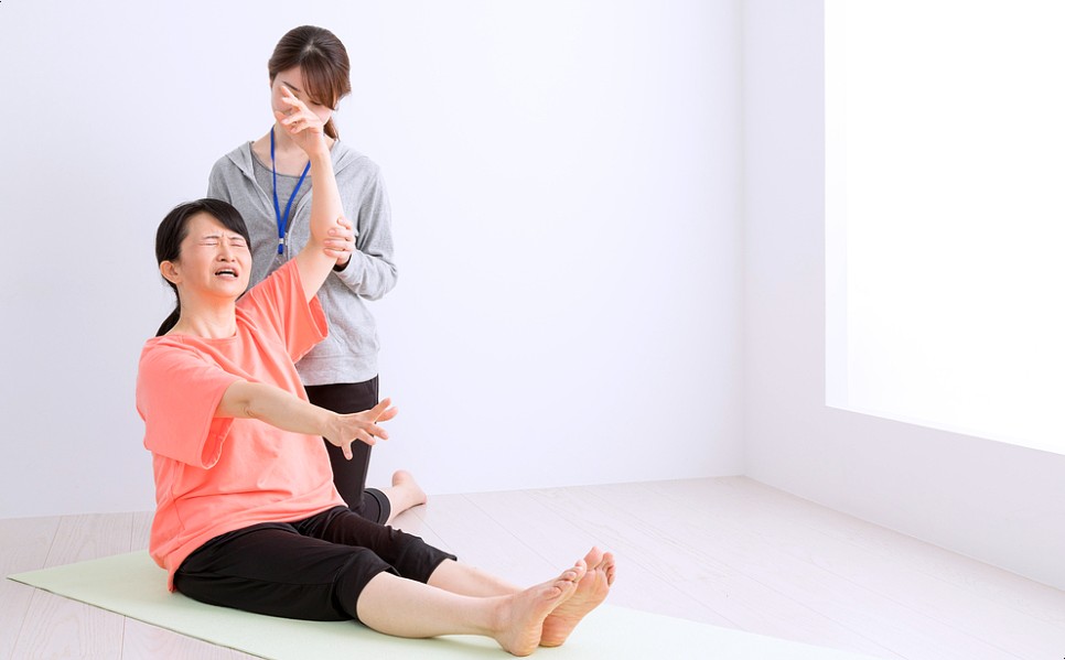 하지만 오십견은 어깨 관절막이 딱딱해져 있어 다른 사람의 도움을 받아도 쉽게 팔을 들어올릴 수 없습니다.