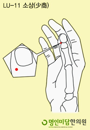 치료하는 경혈, 소상후두염, 편도선염 소상 구멍자리의 위치 후두염이나 편도염에 걸렸을 때 그 위치를 마사지해 주면 좋습니다.물론 가까운 한의원에서 진료를 받는 것이 빨리 회복되는 가장 좋은 방법이겠지요?
