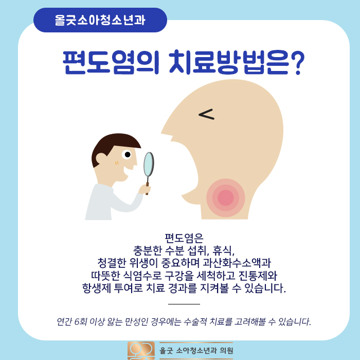 오늘은 올굿 소아청소년과와 함께 소아편도염에 대해 소개하겠습니다.