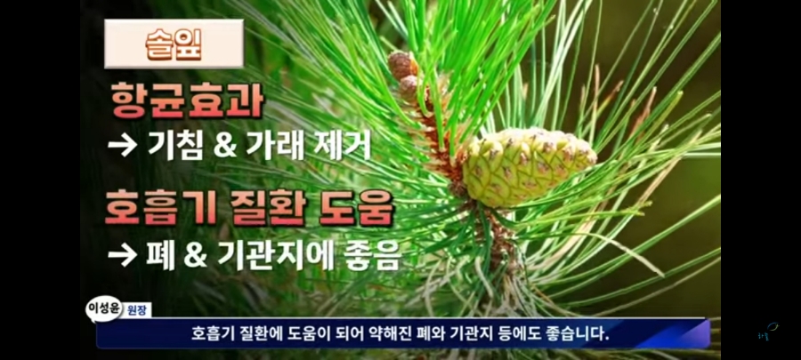 솔잎에는 항균효과가 있어 기침과 가래를 제거하고