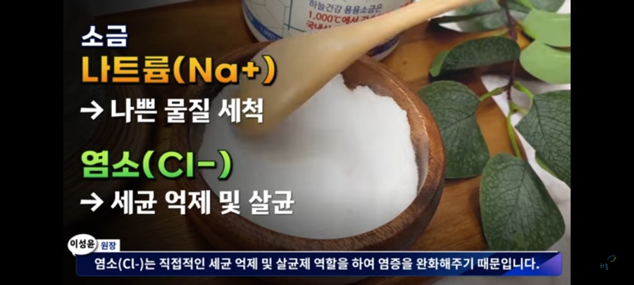 그 이유는 소금의 나트륨(na+)은 수분 보유를 통해 나쁜 물질을 세척해주고