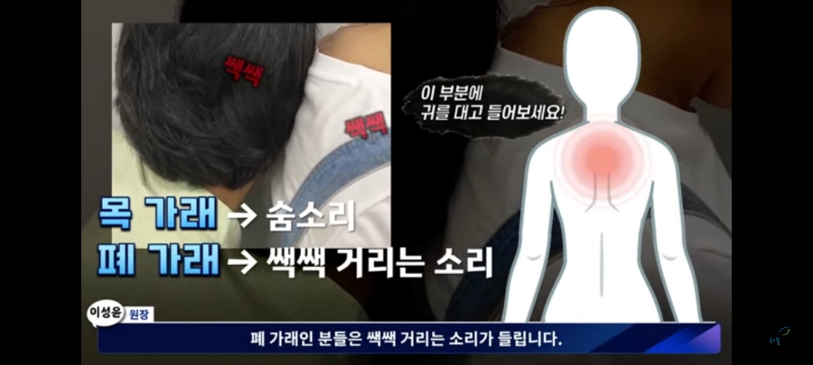 등에 귀를 대고 소리를 들었을 때 화창한 분들은 숨소리만 들리겠지만