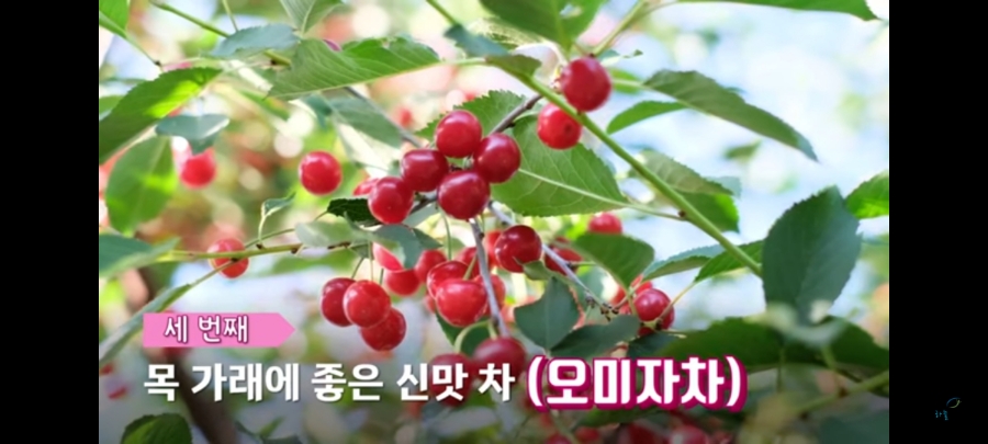 세번째 목에 좋은 차는 오미자차입니다.