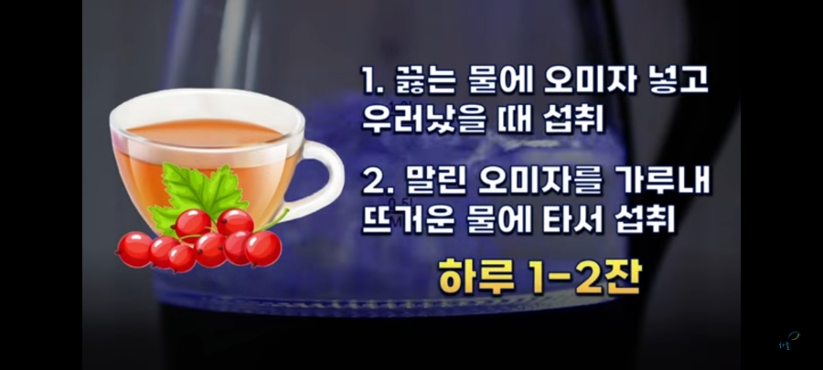 건조오미자를 가루 내어 따뜻한 물에 넣어 하루 1~2잔 마시면