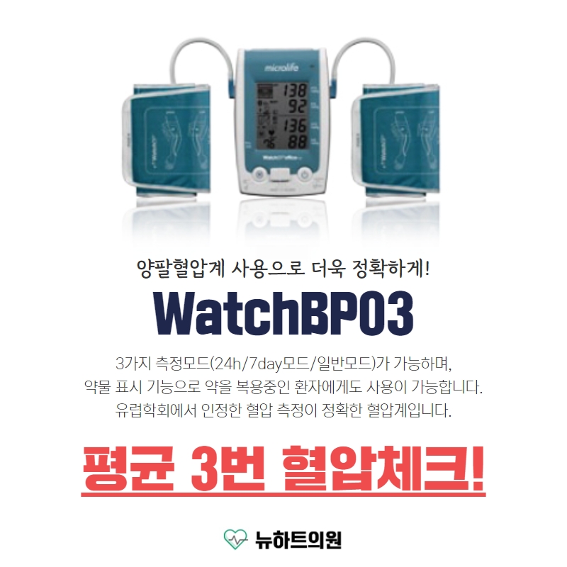 부산 뉴하트의원에서는 고혈압 검사 시 정확한 측정이 매우 중요하다는 것을 잘 알고 있기 때문에 더욱 꼼꼼하게 신경을 쓰고 있습니다.
