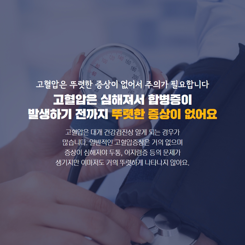 부산 고혈압 환자는 그냥 약만 잘 먹으면 될까요?약을 매일 꾸준히 먹는 것은 기본이고 그 밖에 다양한 건강관리가 더해져야 보다 건강하게 생활할 수 있습니다.
