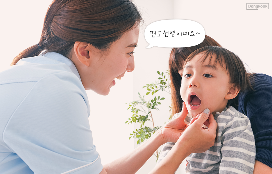 편도선염은 #고열과 #오한, #인후통을 동반해 음식을 삼키기조차 어려운 #연하곤란을 겪습니다.