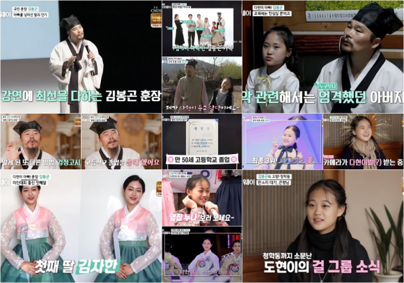 무엇보다 이날 방송에서 김봉곤 훈장이 ‘딸 바보’라는 면모를 드러내 눈길을 끌었다. 셋째 딸 김다현 외에도 미인대회 출신 첫째 딸 김자항, 걸그룹 멤버가 된 셋째 딸 김도현까지 세 딸의 근황을 공개하며 아버지의 미소를 감추지 못했다. 김봉곤은 막내딸 김다현의 등교 도우미로 하루를 시작했다. 애교 많은 막내딸을 학교에 보낸 김봉곤은 “다현이가 막내인데도 부모님 걱정을 시키지 않는 배려가 아이들 중 가장 깊다. 피곤하지만 웃어준다고 자랑했다.