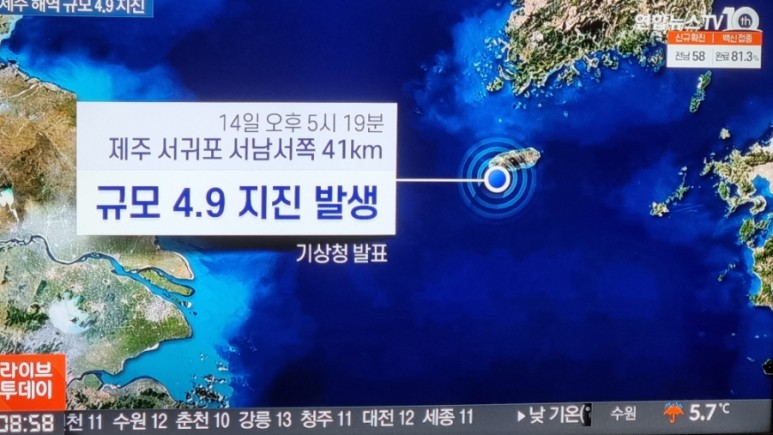 속보방송을 보고 있는데, 있는 곳에서 전화와 문자가 오기 시작했다. 제주도에 지진이 발생했다는데 괜찮냐는 전화였다.