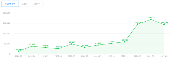 네이버 어드포스트 승인은 2020년 3월에 나왔습니다.2020년 3월 13,600원의 수익을 시작으로 8월까지 매월 3~4만원 정도를 유지하다가 9월에는 총 14개의 포스팅을 하여 43,171원의 수입, 10월에는 총 12개의 포스팅을 하여 수입이 조금 늘어 51,508원, 11월에는 총 11개의 포스팅을 하여 58,709원으로 3개월 연속 증가하였습니다.12월에는 총 18건의 포스팅을 실시해, 145,596원으로 약 3배로 증가했습니다.2021년1월은 총 12건의 포스팅을 실시하여 167,651원으로 조금 늘었습니다.2월에는 총 14건의 포스팅을 진행하여 142598원으로 전달보다 감소하였습니다.