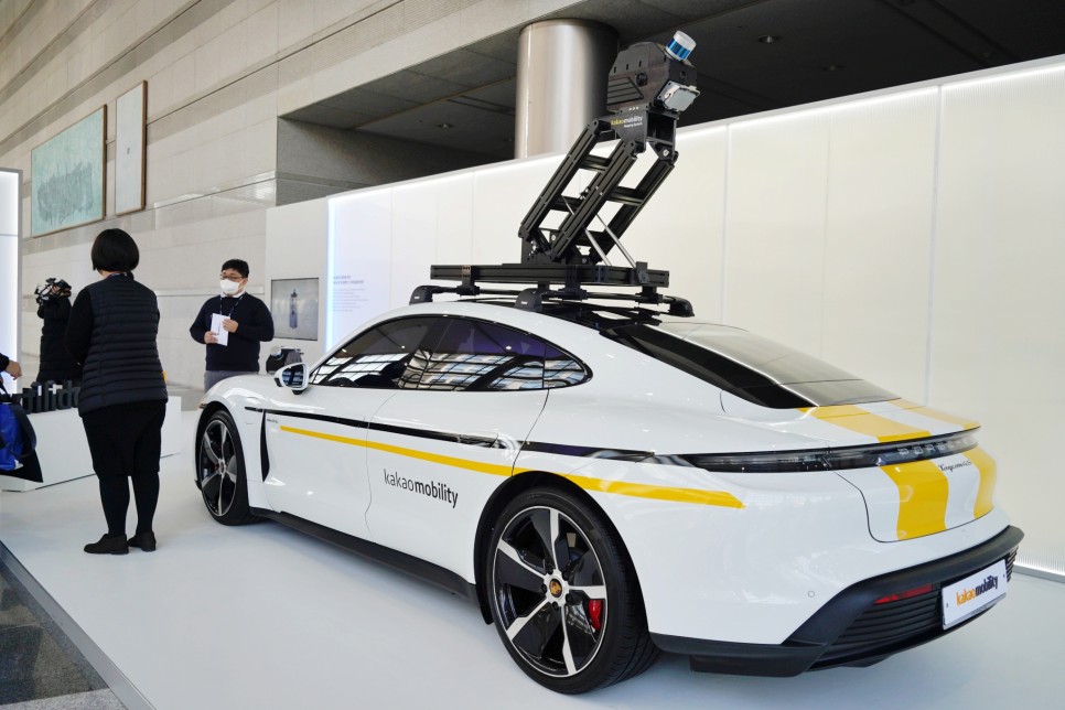 위의 자율주행차는 실제로 판교에서 시범서비스를 하고 있는 차량이라고 합니다. 5개의 라이더, 5개의 카메라, 10개의 레이다의 센서 융합으로 카카오 T 플랫폼에서 승객이 탈 수 있다고 합니다.