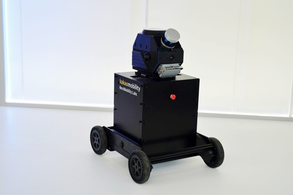 이거는 모바일 로봇 MR입니다 차가 모든 구역에 들어갈 수는 없으니까! 차량 이동이 불가능한 곳에는 카카오모빌리티의 오리지널 모바일 로봇이 출동합니다.