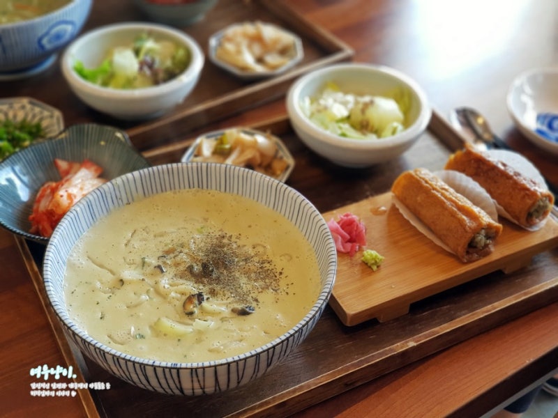 제주 함덕해수욕장 바다가 보이는 곳에 위치한 #해안로칼국수, 함덕주민들에게 사랑받는 진도밍글메집입니다.