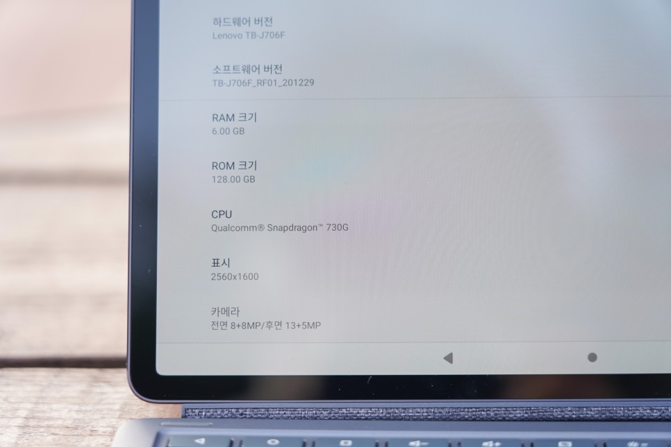 배면 듀얼 카메라는 1300만 화소 일반 렌즈와 500만 화소 광각 렌즈로 구성되어 전면에는 800만 화소의 카메라를 탑재했습니다. 전면카메라에는실시간으로배경을흐리게처리하는스마트프라이버시기술을적용시켜화상수업이나원격회의시꼭필요한것만표시하는방식으로프라이버시보호를효과적으로수행할수있도록했습니다. 저는 전면 카메라의 위치가 아래쪽이 아니라 위쪽에 위치하고 있는 것도 마음에 들었거든요. 역시 밑에 붙어있는 건 구도가 별로예요.