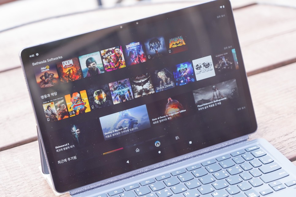 또 XBOX Game Pass도 황색 써봤어요 퍼포먼스도 준수하고 디스플레이와 사운드가 워낙 뛰어나 정말 뭘 해도 만족스러웠어요. 개인적으로 노트북과 태블릿 중에 뭐가 더 좋을지 고민하시는 분들께 두가지 용도로 모두 활용이 가능한 제품으로 레노버 탭 P11 프로를 추천해 드리고 싶습니다.