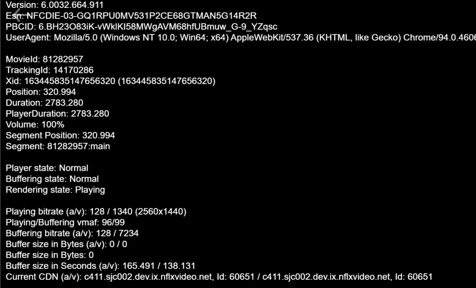 해상도 확인은 넷플릭스 앱에서 키보드 컨트롤+알토+시프트+D를 누르면 위 화면처럼 나타납니다. 저기서 Playingbitrate에 해상도가 보입니다. 이유는 모르겠지만 저는 윈도10 앱에서는 안 올라가요.