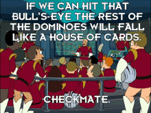 a house of cards : ( 카드로 조립한 집처럼 ) 불안정한 건물 , 계획 a tiered structure created by balancing playing cards on their edgesplan , an organization , etc . , that is so badly arranged that it could easily fail
