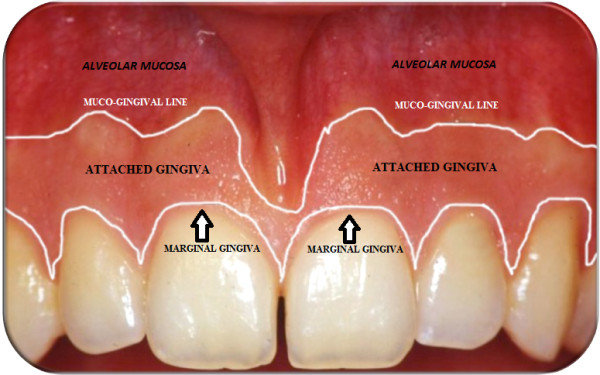 출처_구글 이미지:AttachedGingiva 부착 치은:FreeGingiva 유리 치은:PapillaryGingiva(Interdentalpapilla) 치간치은(치간유두):Gingivalsulcus 치은열구:PeriodontalPocket 치주낭