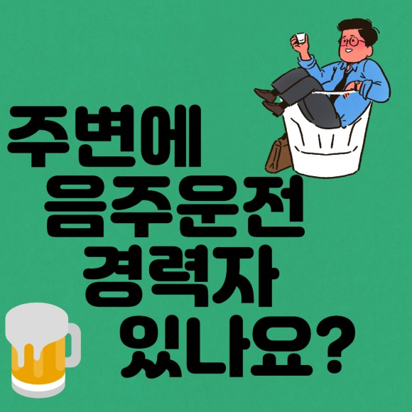그런데 음주운전의 경우 발생 빈도는 많은 편이지만 주변 경력자는 찾기 어려운 편입니다.혹시 부모님이 음주운전 경력자인 경우가 있나요?음주 운전 경력자도 모를 가능성이 80% 이상 있을 것입니다.주변 분들 중에서는요? 아닐 가능성이 높고 있어도 도움이 안 될 가능성이 높습니다.