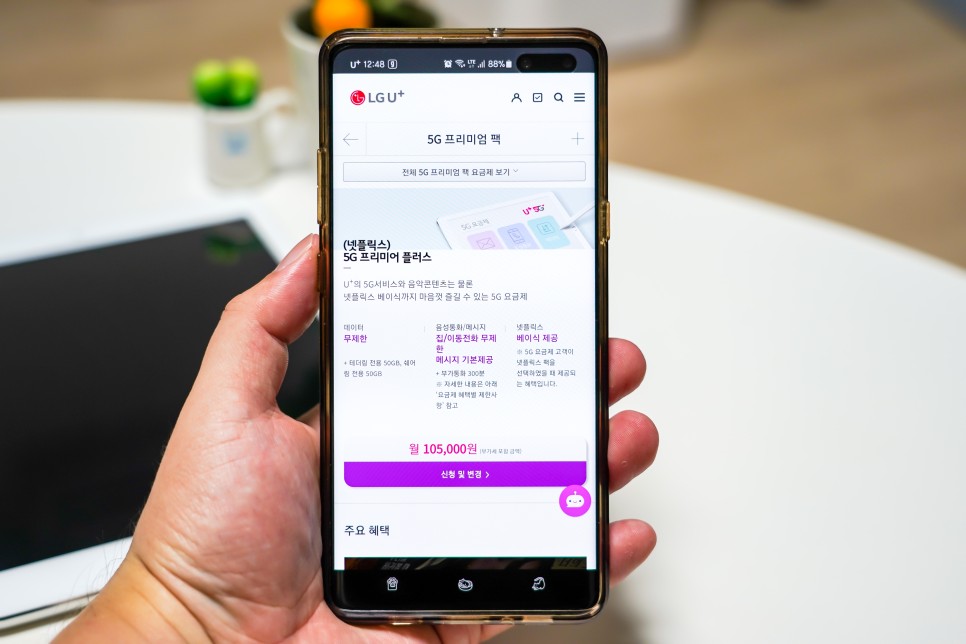유플러스 사용자라면 추천해드리고 싶은 5G 요금제입니다 특히 넷플릭스를 많이 보시면 더할 나위 없겠죠? 뭔가 공짜로 보는 기분! 저는 금방 요금제 변경이 완료되었어요.
